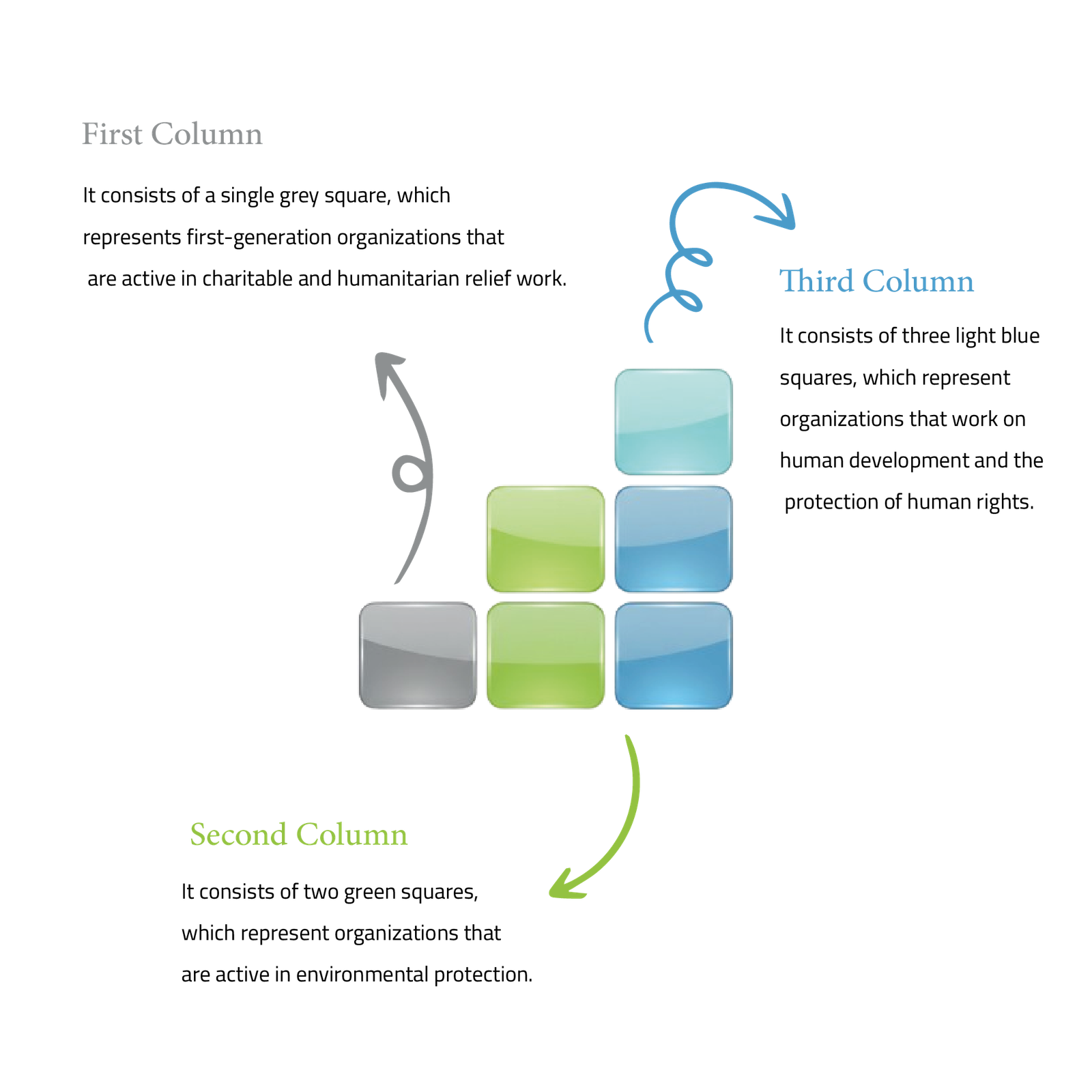 The Commission’s logo is inspired by symbols representing civil society organizations. It consists of six curved squares arranged in three columns.